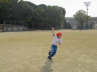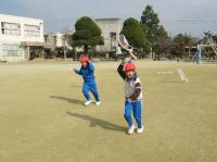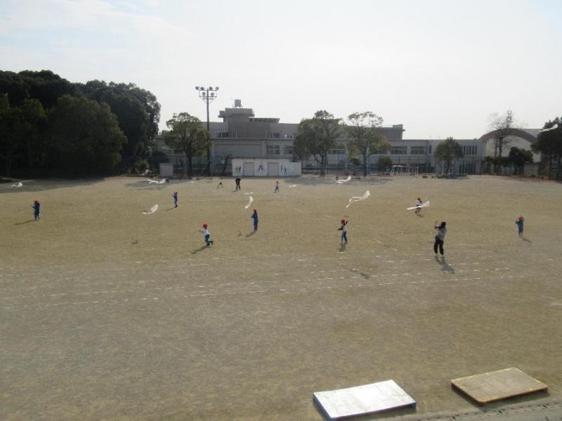 この活動は、生活科の「冬の遊びを楽しもう」にあたるそうです。半袖半ズボンの子もいるほど暖かな春の陽気となりましたが、1年生の子どもたちは全員気持ちよくたこをあげることができて、冬遊びを存分に楽しむことができました。