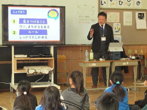 19日(金)にスマホ安全教室が開かれました。3時間目に1・2年生、4時間目に3~6年生がお話を聞きました。