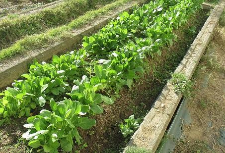 3組4組の子どもたちの畑には、水菜とがチンゲン菜がたくさん育ってます。3組4組の学習では、自分たちで育てた野菜を収穫し、とれたての新鮮な野菜を職員室前で販売する活動に取り組んでいます。お店の名前は、「ショップ 808(やおや) 34(スリー・フォー)、子どもたちが考えた素敵な店名です。