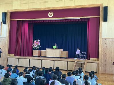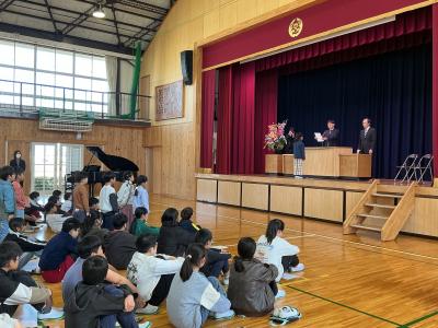 3年生と5年生の代表の児童が1年間のがんばりを発表しました
