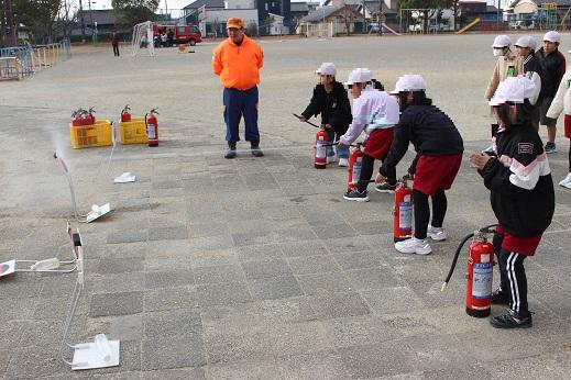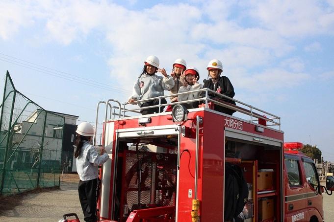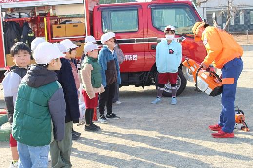 1月16日、3・4年生の子たちが大崎消防団のかたに消防の仕事について教えていただきました。火事が起きたときの動きや、消防車の仕組み、市民館前にある消防団器具庫にはどんなものが置いてあるのかなど聞いたり、実際に消火器を使って火を消す練習をしたり、ジャッキを使って物を持ち上げたりと、多くのことを学びました。校区を守ってくださっている消防団のかたの重要な役割がわかりました。ありがとうございました。