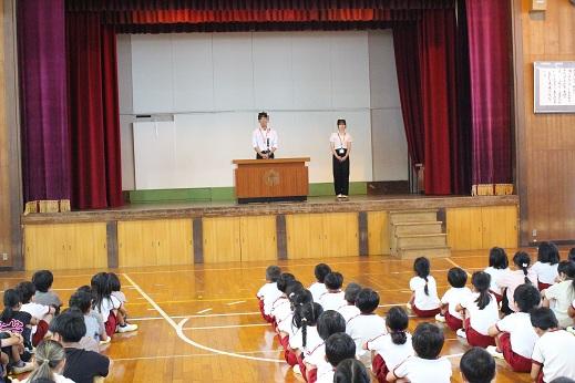 9月29日から大崎小学校に大学3年生の教育実習生2人がやってきました。大崎っ子と一緒に先生になる勉強を3週間行います。朝会で、自己紹介を行いました。すると休み時間には「鬼ごっこしよう」「今度一緒に遊んで」と、子どもたちから声をかけられ、運動場で一緒に走り回っていました。未来の素敵な先生です。