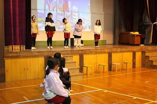 1月29日、校内学習発表会を行いました。全校児童に自分たちの発表を披露する場です。どの学年の子も最初は緊張した顔で始まりますが、すぐに長いセリフをすらすらと言い、笑顔で発表していました。31日の本番は、より素敵な発表になることでしょう。保護者の皆様、寮の先生がた、校区の皆様、子どもたちの堂々とした発表をぜひご覧ください。