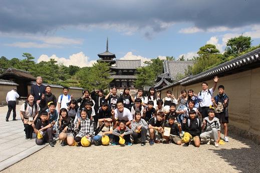 10月1日~2日、6年生が修学旅行で奈良・京都に行きました。2日間とも晴天で、汗ばむほどの暑さでした。奈良では大仏の大きさに見とれたり、鹿せんべいを持った瞬間にシカに取り囲まれ驚いたりと楽しんでいました。夜には京都タワーに上り、京都の夜景を堪能しました。2日目には清水寺参拝後にお土産を買いました。子どもたちは、八つ橋やキーホルダーなど修学旅行ならではのお土産を、嬉しそうに買っていました。金閣寺や二条城など歴史の勉強で習ったものを実際に見ることができ、とても有意義で思い出に残る時間となりました。