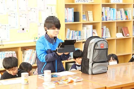 5年生が、総合的な学習の時間に防災について学んでいます。そこで子どもたちが考えた防災バッグに入れたい物を、休み時間に発表しました。トイレグッズや食料など、万が一に備えてこれは必要と考えた物を、実物を見せながら説明しました。発表を聞きにきた子たちからは、「ぼくの家にないから、買ってもらいたい」「ないと心配だ」という声が聞こえました。ご家庭でもぜひ一度、子どもたちも交えて、どのようなものが必要か話し合い、用意してくださいね。