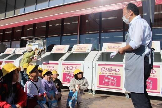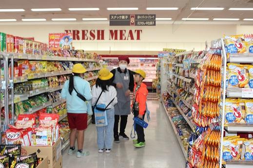 3年生が社会科の勉強で中野町のスーパーに見学に行きました。店内では商品の陳列の仕方の工夫を見つけたり、お買い得商品や地元の野菜などを探したりしました。また、バックヤードでは惣菜を作る様子を見学したり、マイナス25℃の冷凍庫に入ったりするなど、ふだん買い物に行くときとは違う経験ができ、多くのことを学ぶことができました。