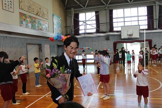 4月14日(火)、退任式を行いました。退任された先生がたとの再会に、子どもたちはとてもうれしくてみんな目を輝かせていました。お礼の手紙を読み、校歌を心をひとつにして歌いました。感謝の気持ちを伝え、最後に一緒に過ごせる楽しい時間となりました。
