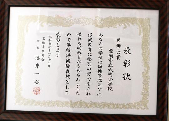 豊橋学校保健大会がライフポートにて行われました。本校は、「豊橋市医師会賞」をいただきました。この賞は、学校の保健険教育への取り組みが優良であったであったことが評価されたものです。冬に向かっていく中で、インフルエンザやコロナウイルスなど感染症が心配されます。子どもたちの健康にこれからもより一層気を配っていきます。