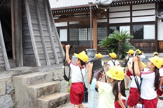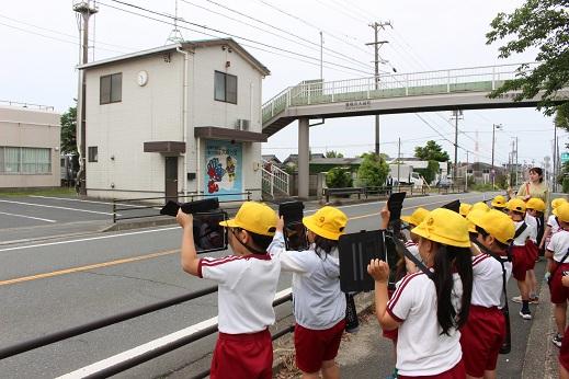 2年生が生活科の学習で町たんけんに出かけました。自分たちが住んでいる校区にはどんな店や場所があるのか、タブレットで写真をとりながら、見つけてきました。何気なく歩いていると見過ごしてしまう場所も、探しながら歩くと、多くの発見をすることができました。