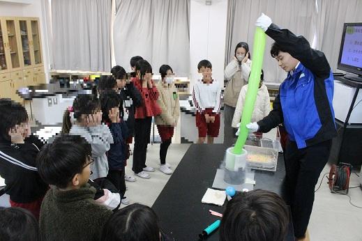 サーラのかたを講師にお招きし、4年生が理科の授業を行いました。二酸化炭素の排出が少なく、環境に優しい天然ガスを運ぶ仕組みについて、液化窒素を利用した楽しい実験を通して教えてくださいました。