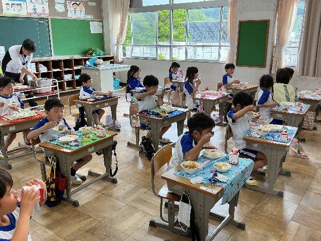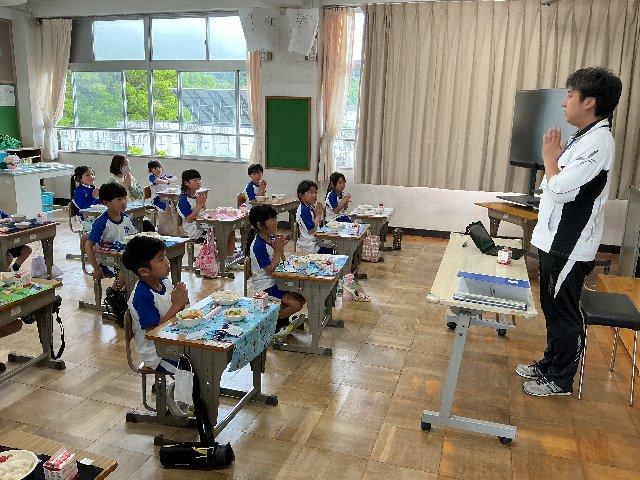 1年生給食始まる 投稿日時 : 04/20 主担 1年生は今日から給食が始まります。小学校で初めての給食になるので先生が丁寧に説明をしていました。教務主任の先生や保健室の先生もお手伝いに来てくれました。みんな指示を聞いてスムーズに準備ができたようです。 そして小学校最初の「いただきます」となりました。これから卒業までに何回の給食を食べることでしょう。千回ぐらいかなあ? 記念すべき第1回の給食は上手にできました。