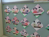 さて、本校はまとめの時期真っただ中。巡回中、校内のあちらこちらに子どもたちの作品が掲示してあります。図工での版画作品や折り紙クラブのお雛様作品、どれも見ごたえのあるものばかりです。写真を掲載しておきましたので、お楽しみください。