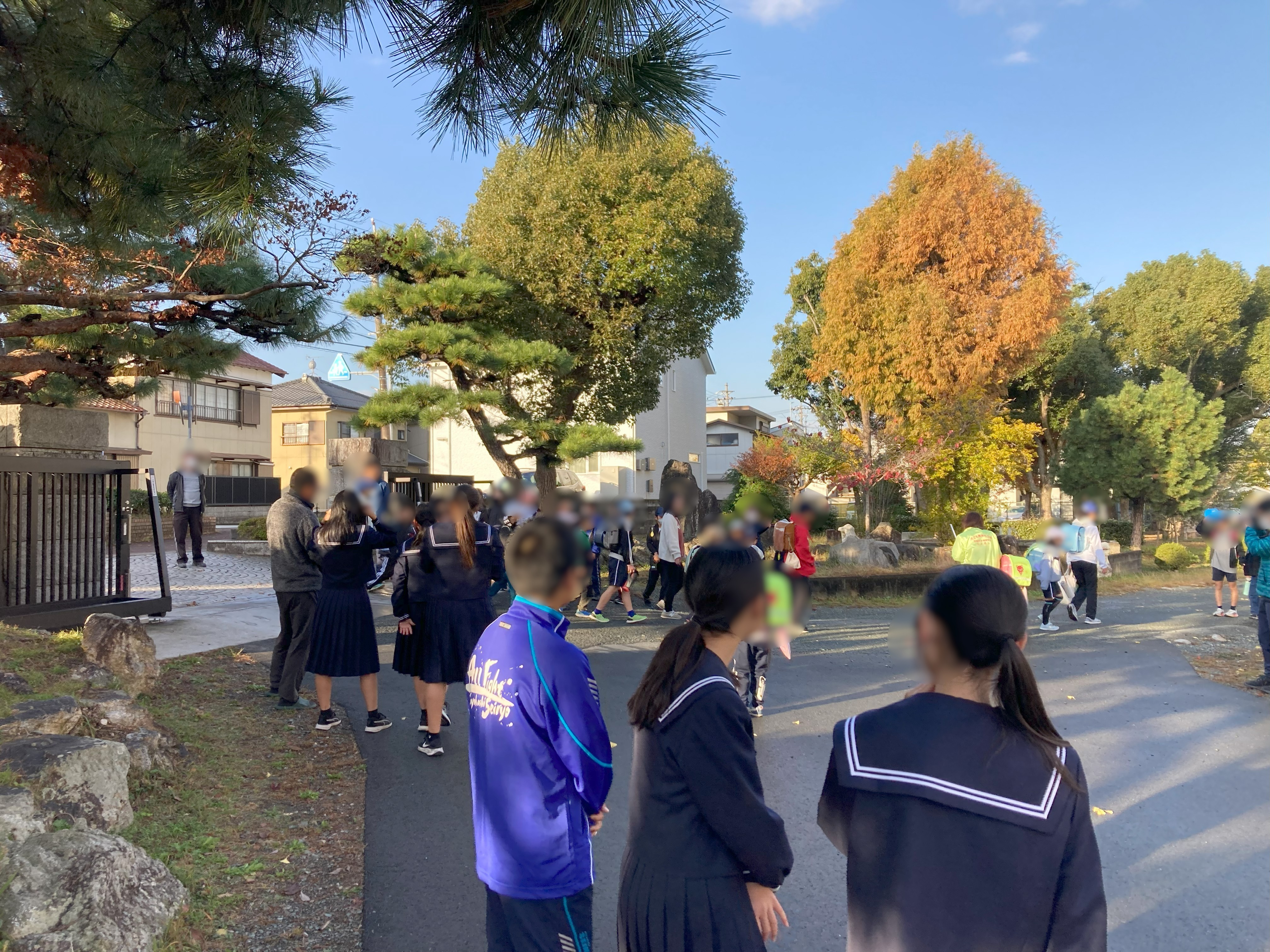 中1の生徒の有志が、出身小学校へ出向き、朝の登校時に
