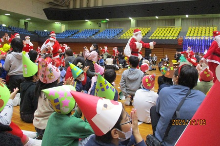 総合体育館に、市内の特別支援にかかわる子どもたちが集まって47回目の開催です。豊橋北LCの長年のご支援のもと、今年もすてきなプログラムのもとでひと足早いクリスマスパーティーを楽しみました。