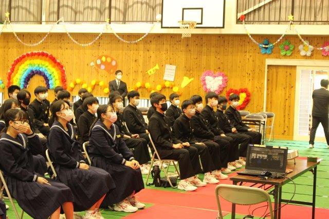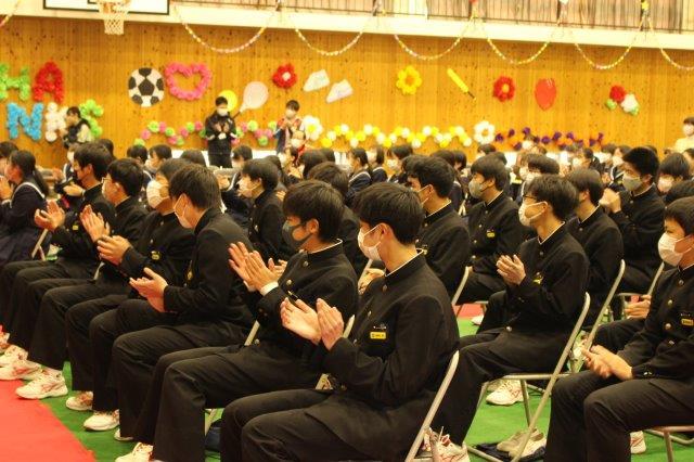 会の終了後,3年生の代表生徒が放送で1,2年生にメッセージを伝えました。1,2年生が3年生に,3年生が1,2年生に感謝の気持ちを伝える素敵な会になりました。