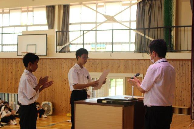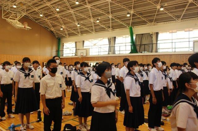 「部活動の夏の大会への活躍とその応援についてがんばった」,「夏休みは自分の心と体の健康を第一に考えて過ごしてほしい」とお話をされました。
