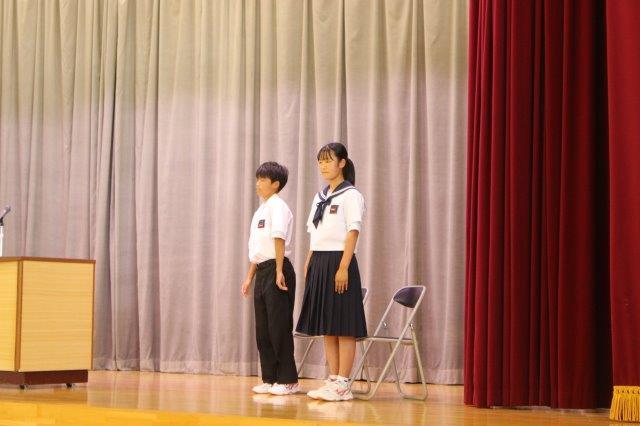 次に,1年生とEF組の代表生徒が1学期の反省を発表しました。