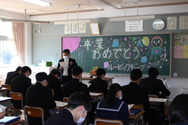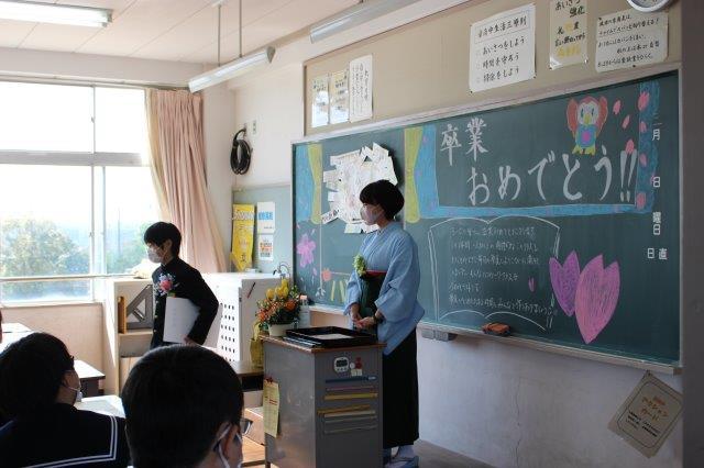 体育館での卒業式の後,それぞれの学級で学級卒業式が行われました。