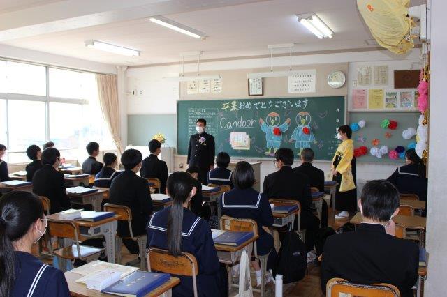 3年間の学校生活を思い出しながら真剣に話を聞いていました。