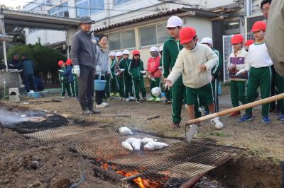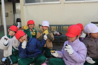 2年生が春に苗を植え,秋に収穫したサツマイモを焼いて食べました。