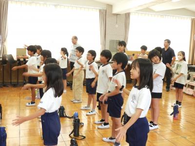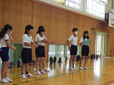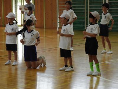 6年生は、下級生に応援の流れや声の出し方、動き等を説明しながら自分たちの力で進めました。説明の仕方に悩んだときは友達と考えたり、わからない下級生には近くに行って動きを教えたり…。大勢を動かす難しさを感じながら取り組んでいます。