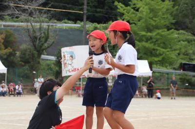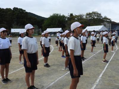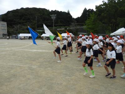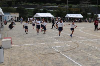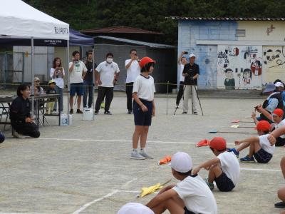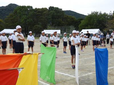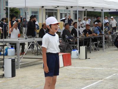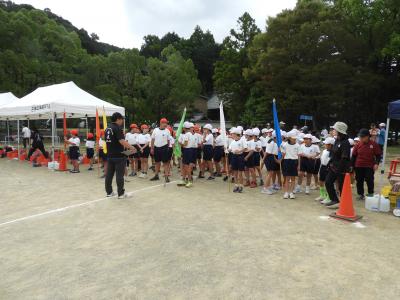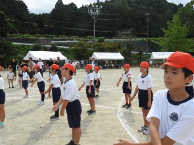 全校児童77人が全員そろい、天候にも恵まれる中、運動会が始まりました。