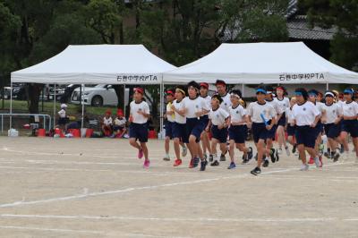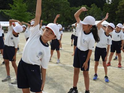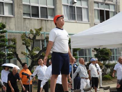 第1回の演技は準備体操。校区の皆様も、来賓の皆様も、みんなで一緒になって体操しました!