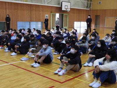 終業式の後で、校務主任から「冬休みの生活」について話をしました。3つの車にお世話にならないように!