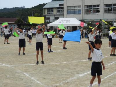 全校77人で、とてもすてきな全校表現となりました!みんなの旗の振りがそろったときの音もとてもよかった!
