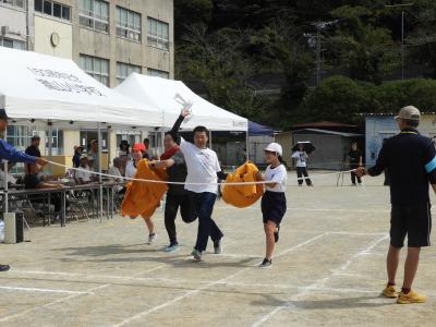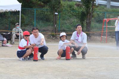 防災リレーで親子の絆が深まったかな。きっとすてきな思い出になることと思います。