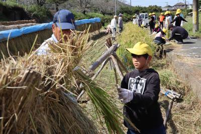 稲刈りを手作業で行う大変さを少し感じることができたことと思います。