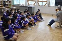 机を後ろに移動させ、床に座って近くで聞くで子どもたちの横顔は、リラックスした中にも、真剣な様子が見られました。