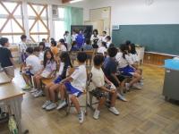 7月4日(金)3限に、4年生は上下水道局のかたを招いて、出前講座「ピカピカの水:下水道」の授業がありました。クイズに答えたり、写真を見たりして、下水がきれいな水に変わっていく様子を学習しました。また、実際に下水のにおいを嗅いだり、色を見たりして、きれいな水と下水の違いを比べました。さらに、汚れを分解する微生物を顕微鏡で観察しました。