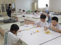 9月25日(木)3限、くろしお学級では、本年度2回目の居住地校交流がありました。今回は、くすのき特別支援学校のお友達と一緒にパンケーキ作りをしました。焼きあがったパンケーキに生クリームやフルーツをトッピングして、みんなでおいしくいただきました。