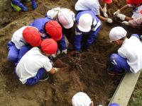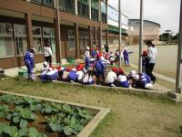 10月23日(木)4限、1・2年は学級園で育てたお芋を掘りました。子どもたちは、土をほったり、根っこを引っ張ったりして、みんなで楽しくお芋をほりました。今年は、昨年より大きなお芋が取れました。