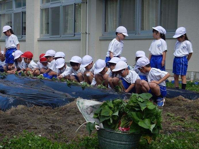 サツマイモの つるさしをしています。