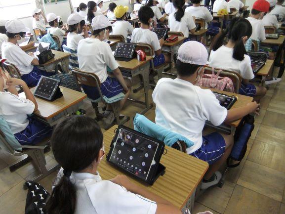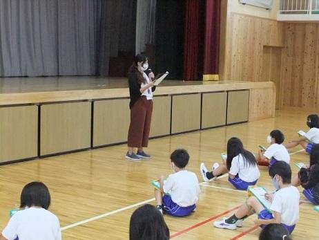 始業式では,1・3・5年の代表児童が2学期にがんばりたいことを発表しました。校長先生から,代表の子だけでなく,一人ひとりががんばりたいことを決めて,笑顔いっぱいの2学期を過ごしてほしいと伝えました。