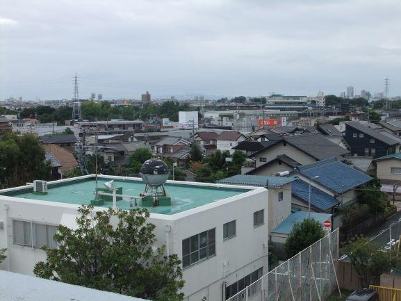 屋上から見た景色(南西方面)です。晴れていたらもっと遠くまで見えるかな。