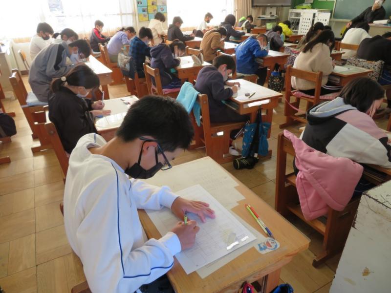開始の合図とともに,真剣な表情で答えを書き始めます。必死に練習した成果を出せたかな?