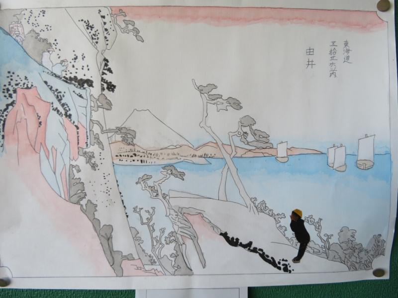 絵の中に自分の姿をはめ込んでいます。ちょっとした一工夫でおもしろい作品に仕上がっています。