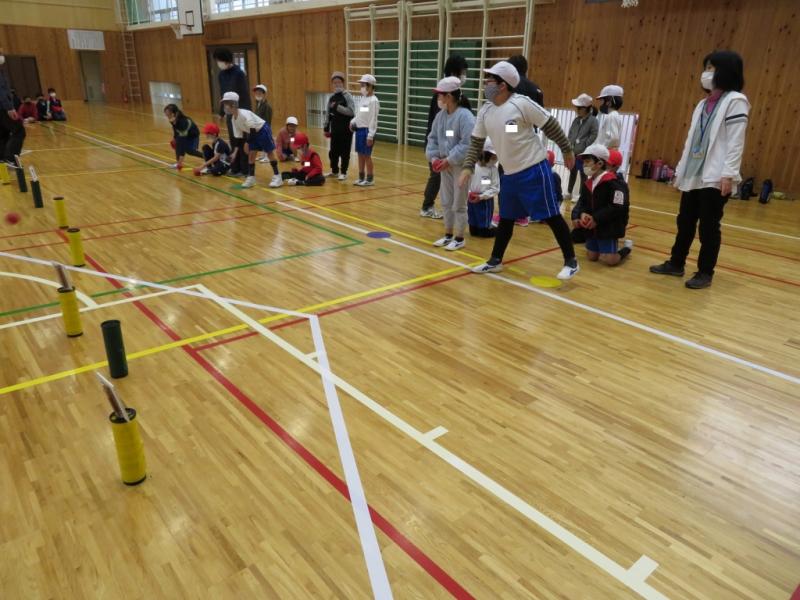 ボールを投げたり転がしたりして的を狙います。これがなかなか難しいんですが,みごとに当たったときは拍手と歓声があがりました。