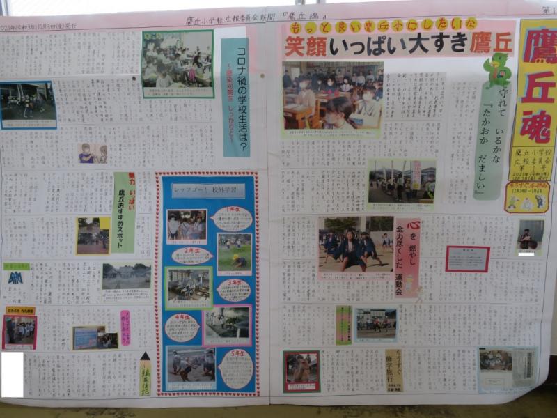 広報委員の新聞担当の子たちが分担して記事を書き,1つの作品に仕上げました。これまでの鷹丘小の様子をわかりやすくまとめてあります。まだ見ていない子はぜひ見てみてください。
