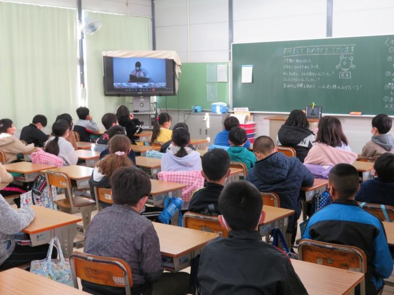 始業式では,2・4・6年生の代表児童が目標を堂々と発表しました。それを教室で聞く様子も大変立派でした。