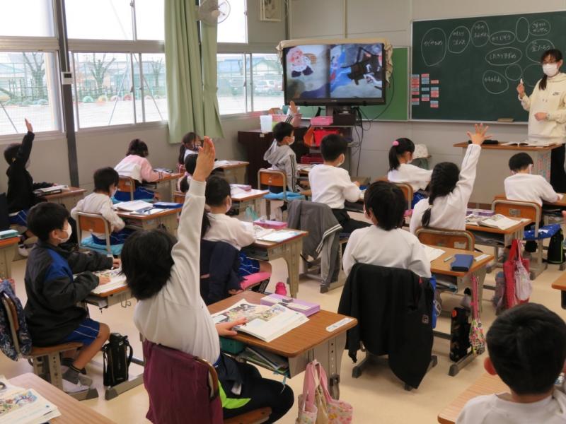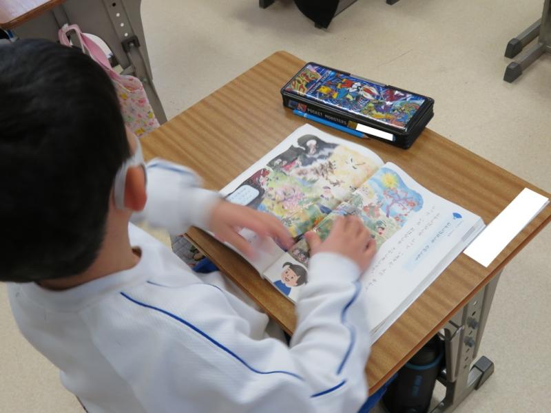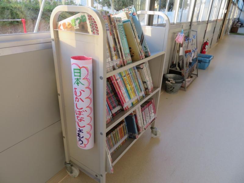 1年生が日本むかしばなしを楽しんでいます。司書さんがたくさん用意してくれましたので,いろいろなお話を読んでみてください。