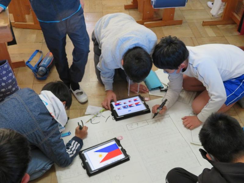 6年生は世界に目を向け,身近な国について調べて,まとめています。どの国を調べているのかな?