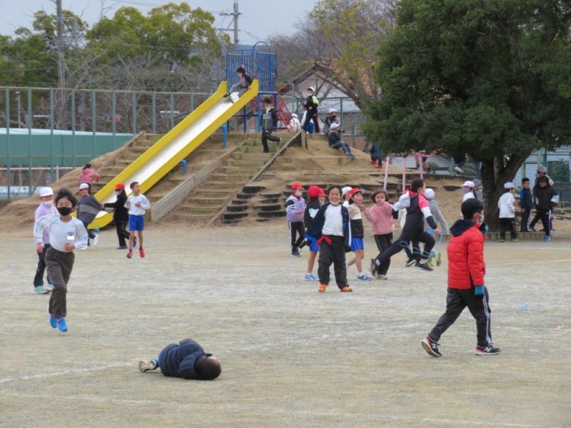 低学年は運動場が使える日です。寒さが厳しい中でしたが,多くの子が外遊びをしていました。