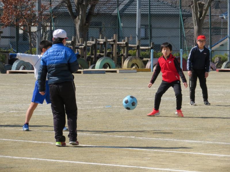 ボールが当たると痛い…。でも,それを恐れずにパス,シュートです。
