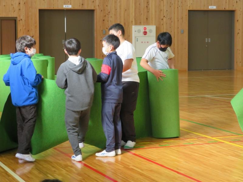 1年間で最大の行事の卒業式が近づいてきました。6年生が体育館を使って練習できるように,5年生が会場を準備しました。