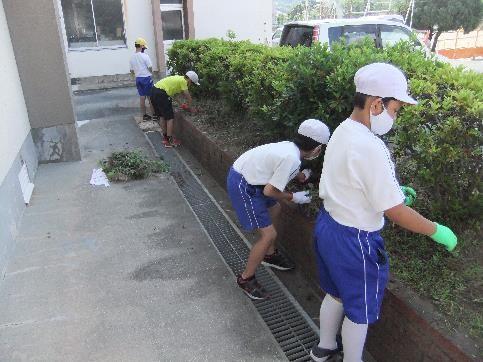 ふだんの掃除ではなかなか手がまわらないところなので,とても助かります。1年生,3年生のみなさん,ありがとう!