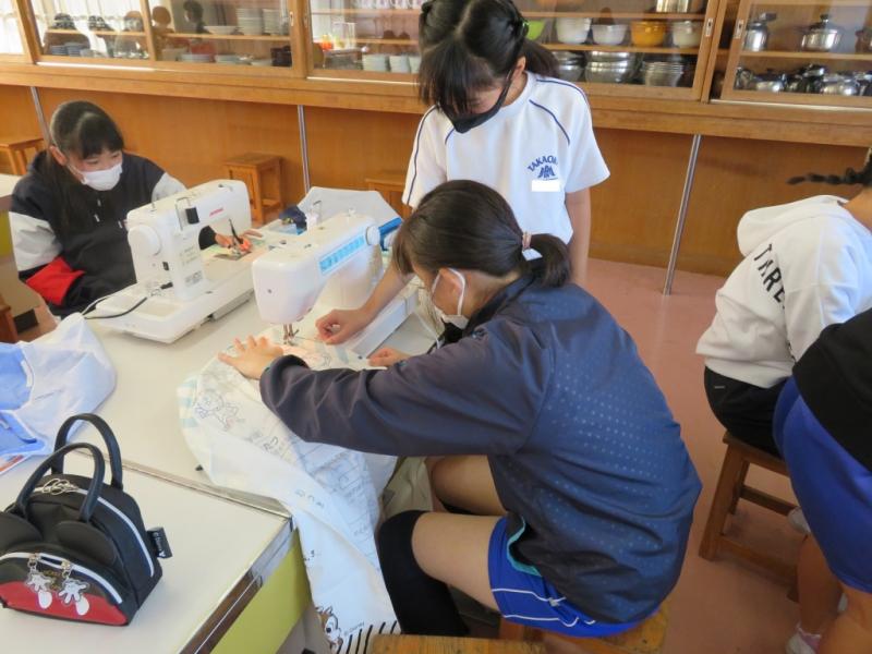 それでも教えあいながら,上手に使えるようになってきました。できあがったエプロンは大切に使ってください。